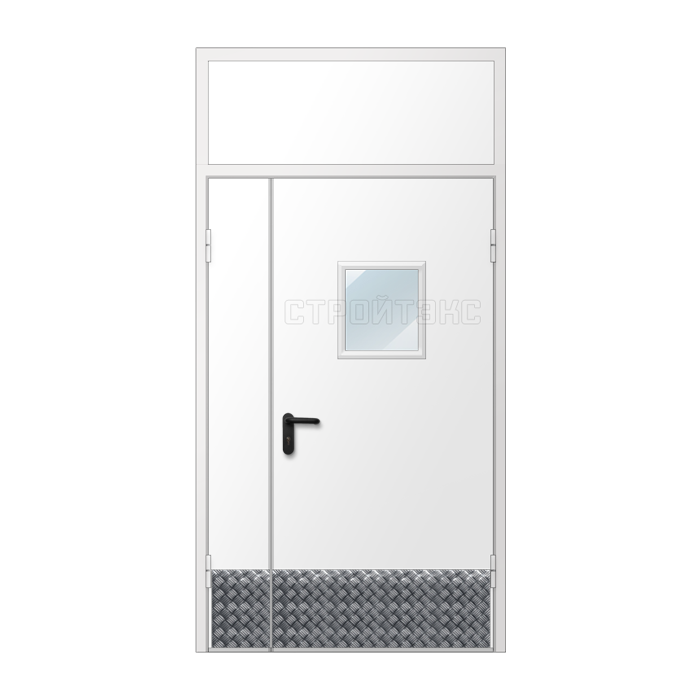 Дверь двупольная металлическая противопожарная с фрамугой изготавливается по индивидуальным размерам на нашем собственном производстве. Полотно и рама двери выполнена из металла 1,2 или 1,4 мм. Цвет двери может быть абсолютно любой по шкале RAL, используем порошковое напыление. Качественная упаковка обеспечит доставку в другой регион без рисков. Срок изготовления в среднем занимает 7 дней.