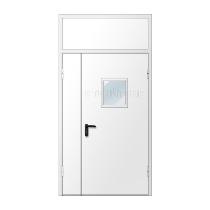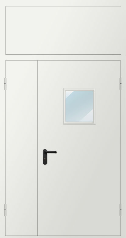 Дверь двупольная металлическая противопожарная с фрамугой изготавливается по индивидуальным размерам на нашем собственном производстве. Полотно и рама двери выполнена из металла 1,2 или 1,4 мм. Цвет двери может быть абсолютно любой по шкале RAL, используем порошковое напыление. Качественная упаковка обеспечит доставку в другой регион без рисков. Срок изготовления в среднем занимает 7 дней.