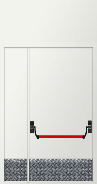 Дверь двупольная металлическая противопожарная с фрамугой изготавливается по индивидуальным размерам на нашем собственном производстве. Полотно и рама двери выполнена из металла 1,2 или 1,4 мм. Цвет двери может быть абсолютно любой по шкале RAL, используем порошковое напыление. Качественная упаковка обеспечит доставку в другой регион без рисков. Срок изготовления в среднем занимает 7 дней.