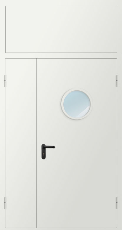 Дверь двупольная металлическая противопожарная с фрамугой изготавливается по индивидуальным размерам на нашем собственном производстве. Полотно и рама двери выполнена из металла 1,2 или 1,4 мм. Цвет двери может быть абсолютно любой по шкале RAL, используем порошковое напыление. Качественная упаковка обеспечит доставку в другой регион без рисков. Срок изготовления в среднем занимает 7 дней.