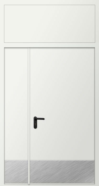 Дверь двупольная металлическая противопожарная с фрамугой изготавливается по индивидуальным размерам на нашем собственном производстве. Полотно и рама двери выполнена из металла 1,2 или 1,4 мм. Цвет двери может быть абсолютно любой по шкале RAL, используем порошковое напыление. Качественная упаковка обеспечит доставку в другой регион без рисков. Срок изготовления в среднем занимает 7 дней.
