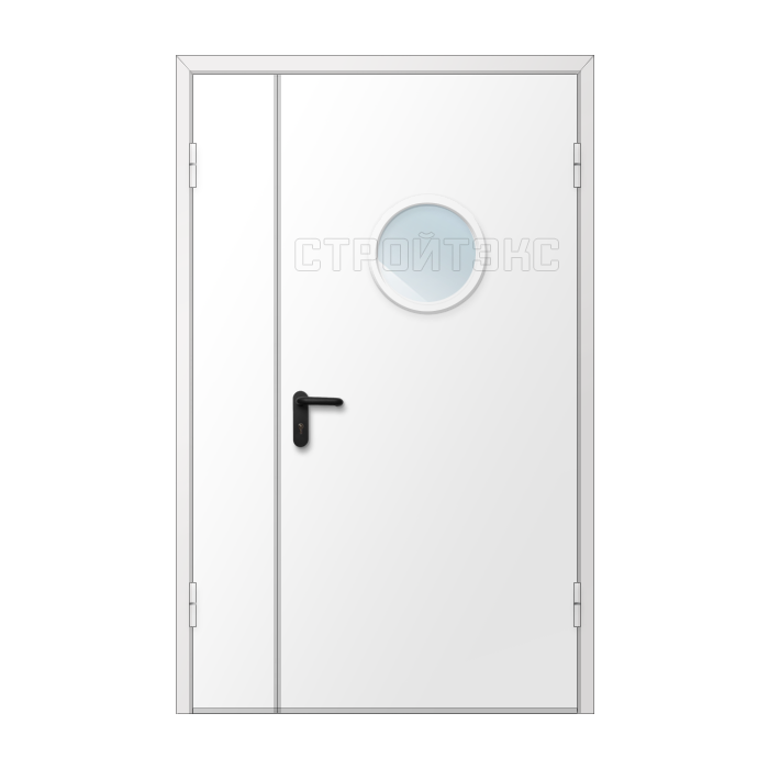 Дверь двупольная металлическая противопожарная с остеклением изготавливается по индивидуальным размерам на нашем собственном производстве. Полотно и рама двери выполнена из металла 1,2 или 1,4 мм. Цвет двери может быть абсолютно любой по шкале RAL, используем порошковое напыление. Качественная упаковка обеспечит доставку в другой регион без рисков. Срок изготовления в среднем занимает 7 дней.