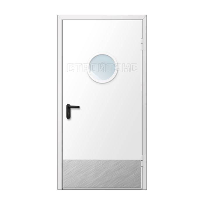 Дверь противопожарная металлическая остекленная однопольная EIS60 D300 с накладкой из нержавеющей стали
