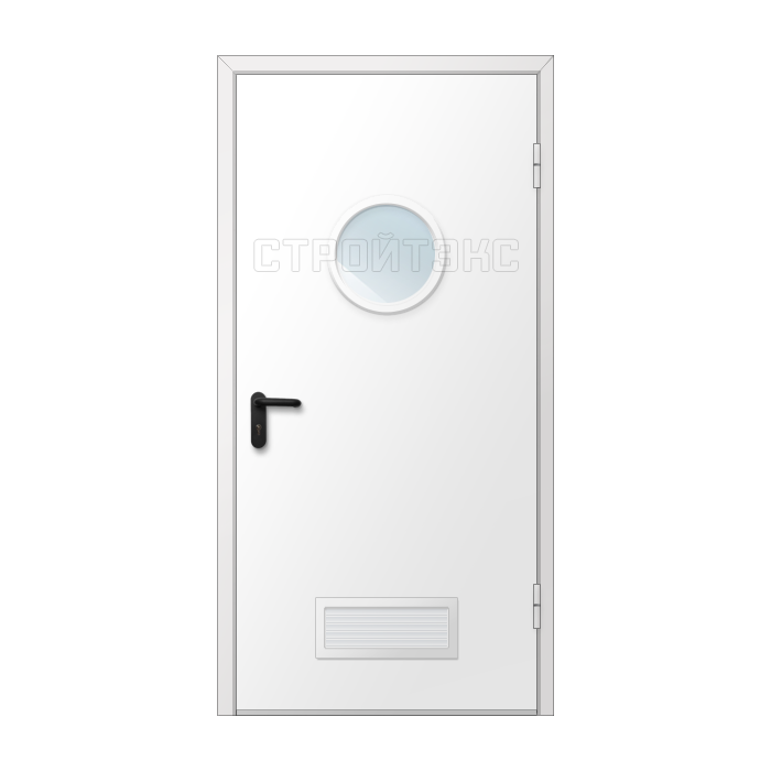 Дверь техническая ДМ-1 с остеклением D300мм и вентиляционной решеткой