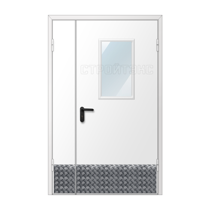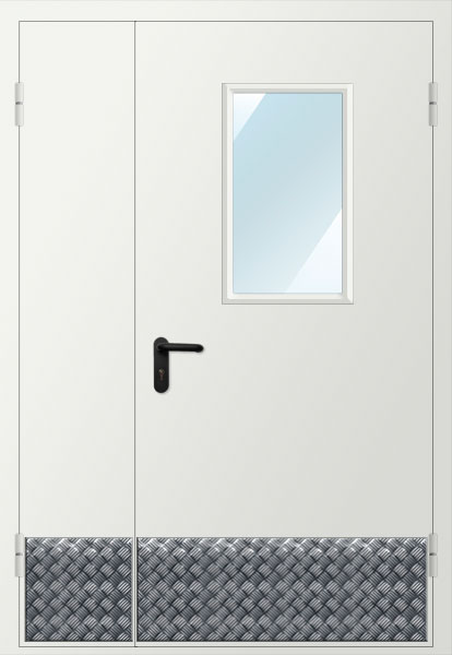 Дверь двупольная металлическая с алюминиевой накладкой и остеклением 300х600