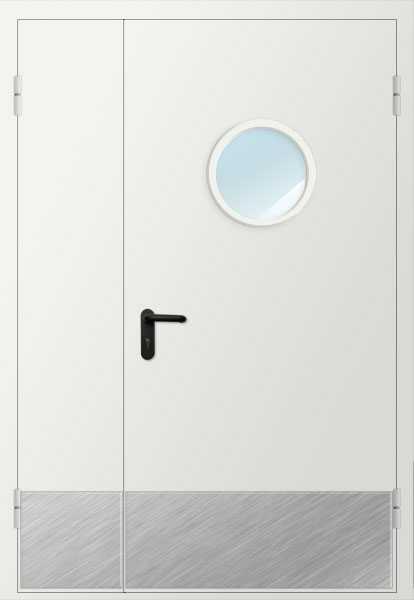 Дверь двупольная металлическая с накладкой из нержавеющей стали и остеклением D300