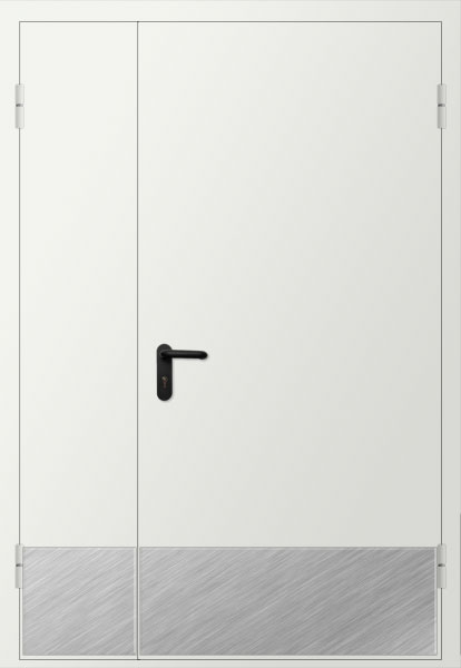 Дверь двупольная металлическая с накладкой из нержавеющей стали