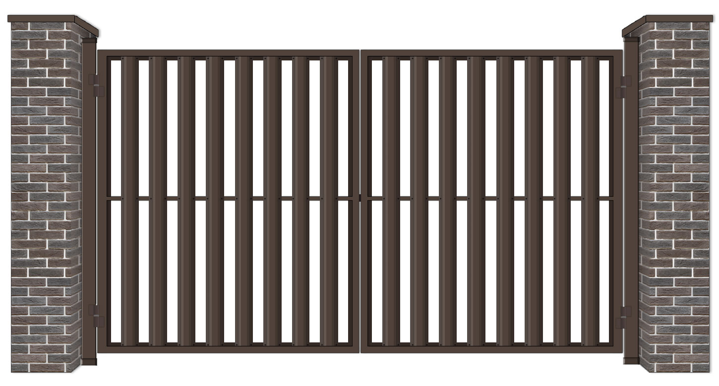 Уличные распашные ворота штакетник изготавливаются по индивидуальным размерам на нашем собственном производстве. Цвет ворот может быть абсолютно любой по шкале RAL, используем порошковое напыление. Качественная упаковка обеспечит доставку в другой регион без рисков. Срок изготовления в среднем занимает 7-9 дней.